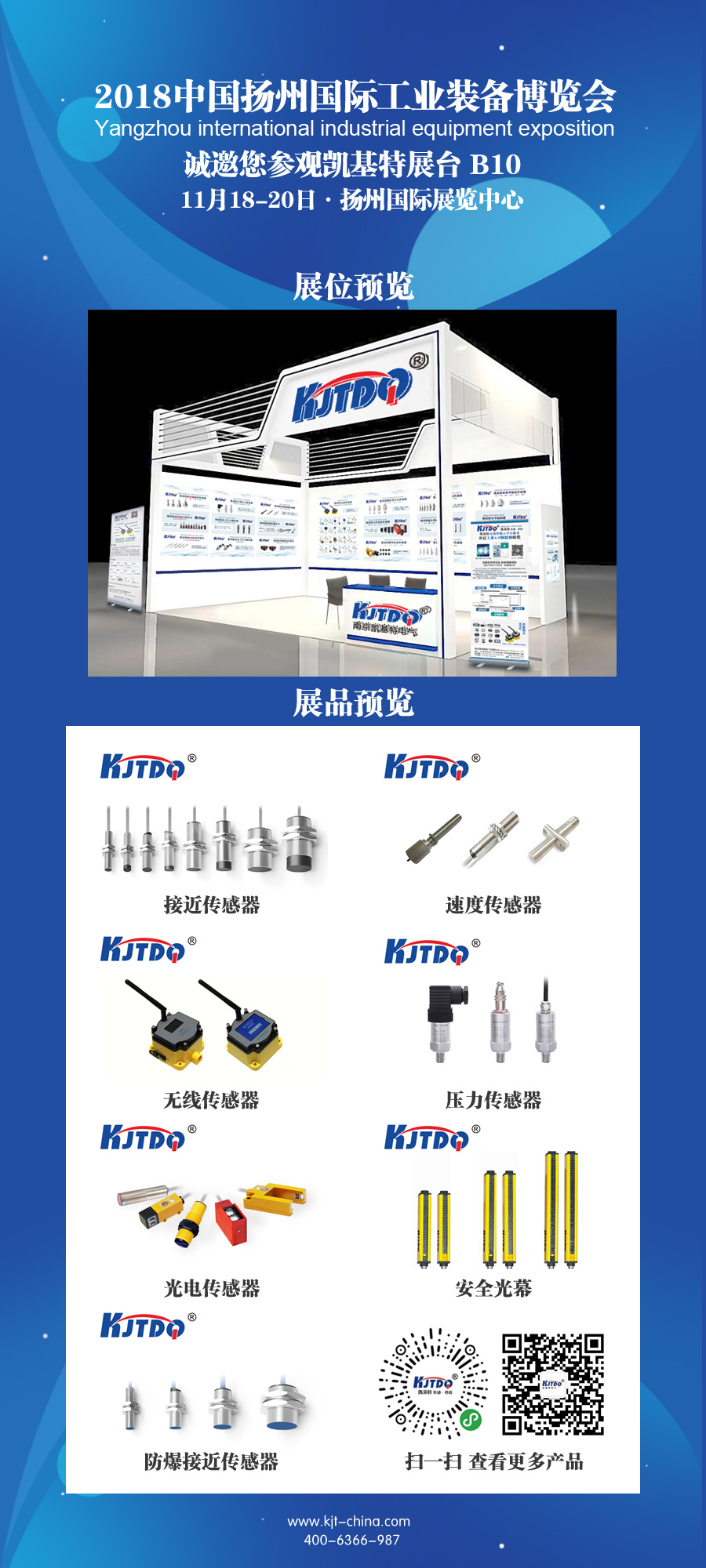 您好!感謝您一直以來對我們的支持。南京凱基特電氣有限公司將于2018年11月18日-20日參加在揚州國際展覽中心舉行的2018中國揚州國際工業裝備博覽會。屆時歡迎您的來訪!
